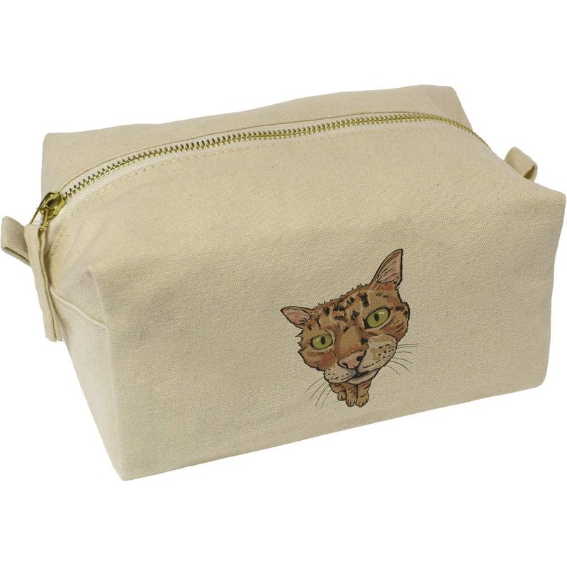 'Ginger Tabby Cat with Green Eyes' Canvas Wash Bag/Makeup Case (CS00044368)