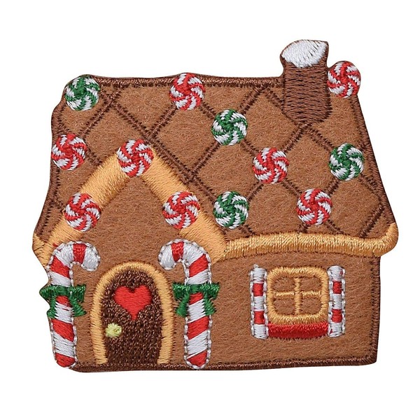Gingerbread House with Peppermint Candy Christmas Cookie Embroidered Iron on Patch