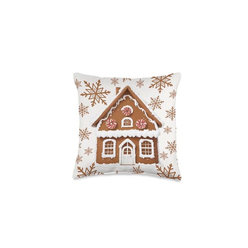 Gingerbread Houses and Snowflakes Cute Christmas Throw Pillow