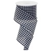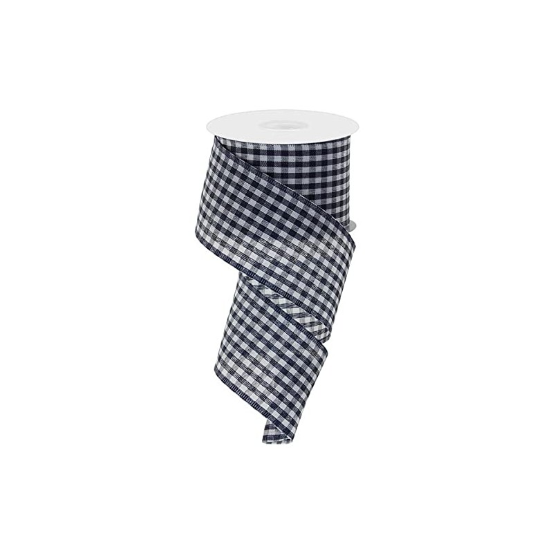 Gingham Check Wired Edge Ribbon, 2.5" x 10 Yards (Navy Blue, White)