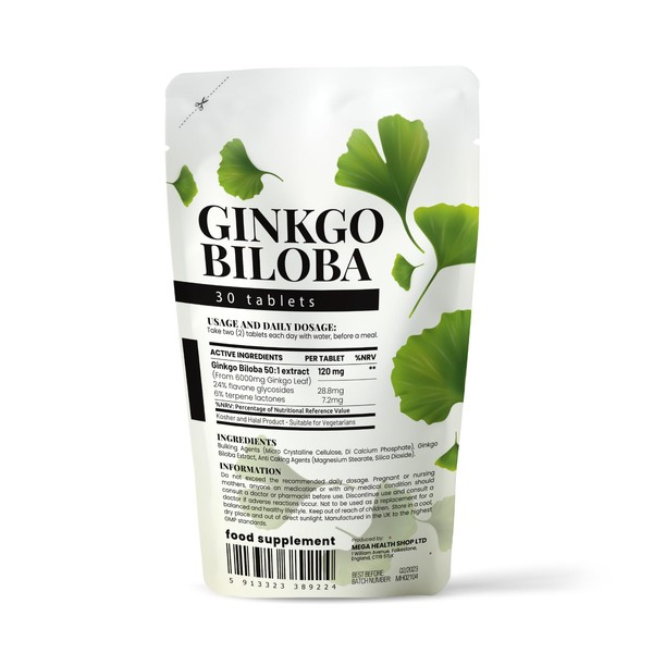 Ginkgo Biloba 6000mg Tablets - Memory, Focus, Energy, Blood Circulation, Mental Clarity (30)