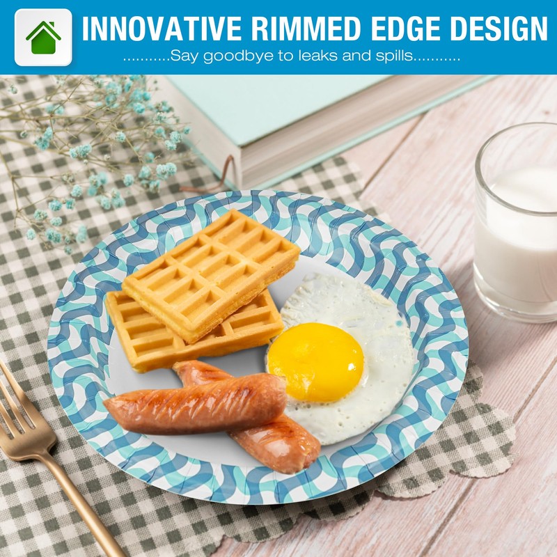 - Mess Free Design - Say goodbye to leaks and spills with our innovative rimmed edge design. These heavy duty paper plates are engineered to prevent food from sliding off and liquids from soaking through.