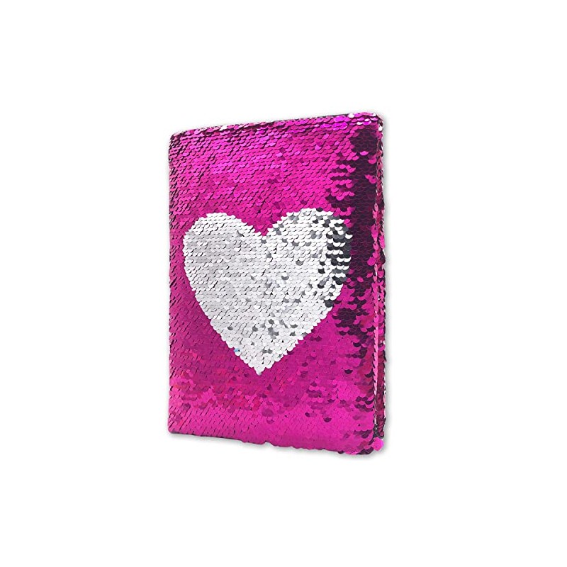 GINMLYDA Girls Diary, Reversible Sequin Girls Notebook 180 Lined Pages 8.5 x 5.5 Secret Diary for Girls Flip Sequence Sliver Heart to Rose Red Perfect Personalised Gifts for Girls age 7 8 10 13 14