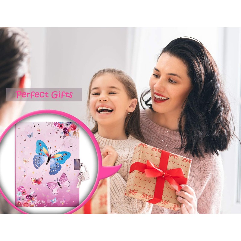 - 📖【Diary for Girls】18 x 13.5cm butterfly secret diary for girls, 160 pages (80 sheets), perfect size for girls to easy carrying and placement. Notebook for kids included 1 Sliver Metal Lock and 2 Keys