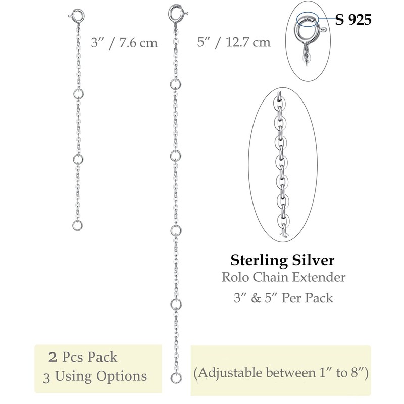 - ❤️ FINE MATERIAL ❤️ Solid Sterling Silver Extenders include all the Clasps, Chain and spring Rings. Adjustable easily by attaching them to any of your necklace, bracelet or anklet to achieve the length.