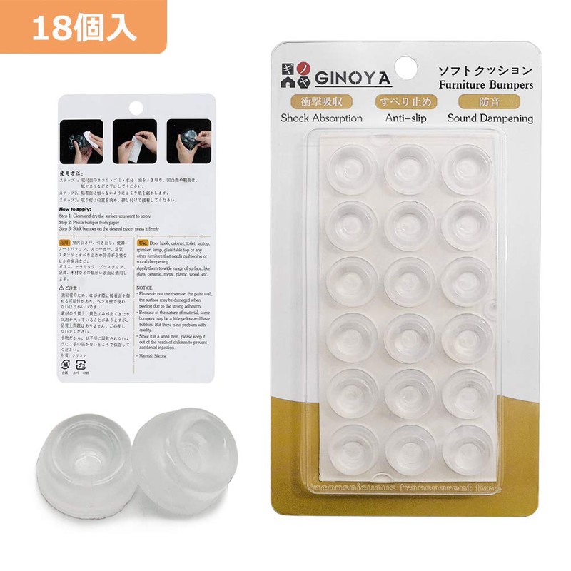Ginoya Soft Cushion, 18 Pieces, Large Doorstop Cushion, Impact Sound and Scratch Prevention, Anti-Slip, Instruction Manual Included