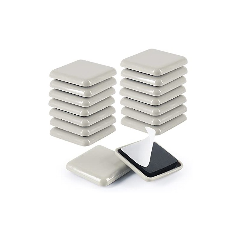 GINOYA Stick Furniture Sliders, 16pcs Square Furniture Glides for Easy Moving on Carpet Hardwood (Beige)