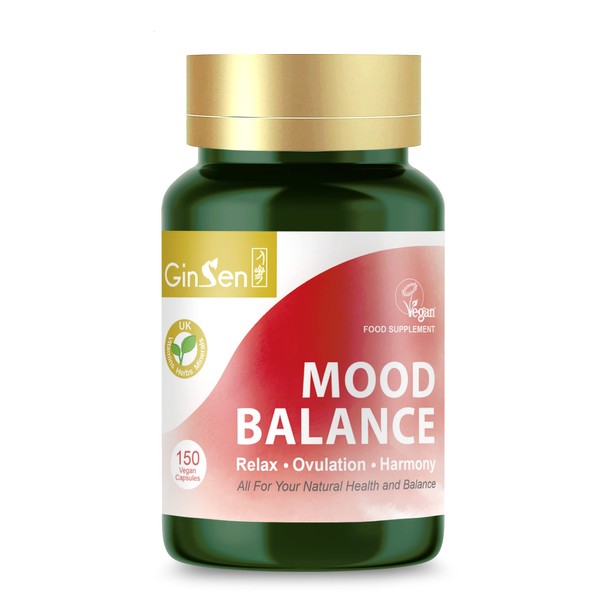 GinSen Strong Mood 150 Capsules, Natural Balance, Ovulation Support & Stress Management, Vegan Approved Supplement, Herbal Extract&Vitamins Made in UK
