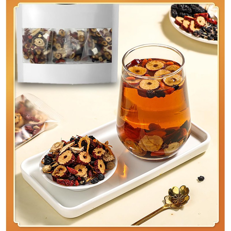 - Ginseng + Goji: A Time-Honored Duo: This revitalizing tea blends two of the most respected herbs in traditional Eastern wellness — ginseng for energy and goji berries (wolfberries) for vitality, vision, and immune support.