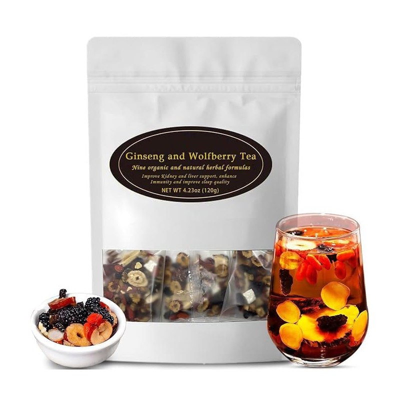 Ginseng and Wolfberry Tea – Energizing Herbal Blend with Ginseng & Goji Berries | Natural Support for Energy, Eye Health, and Immune Function | Caffeine-Free Daily Wellness Tea