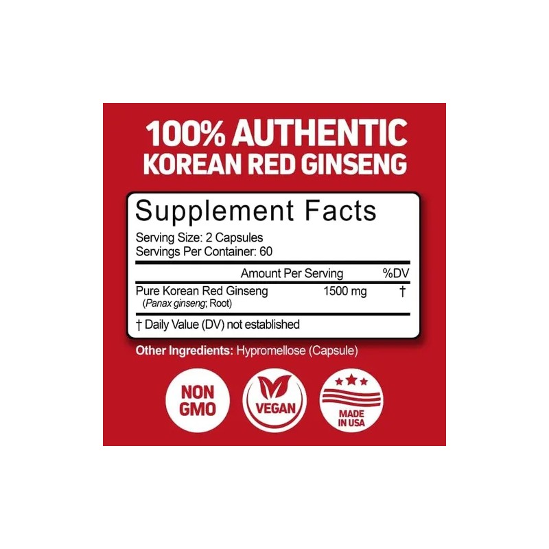 Ginseng Panax Rojo Coreano 1500mg 120 Cápsulas Sin Sabor