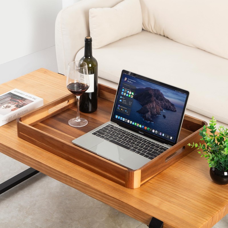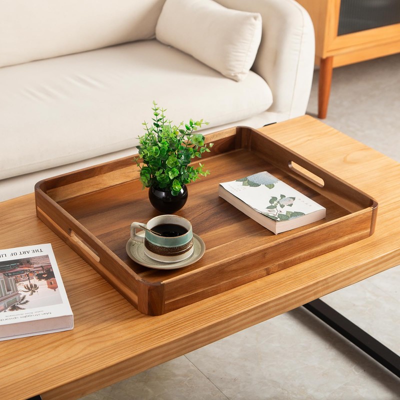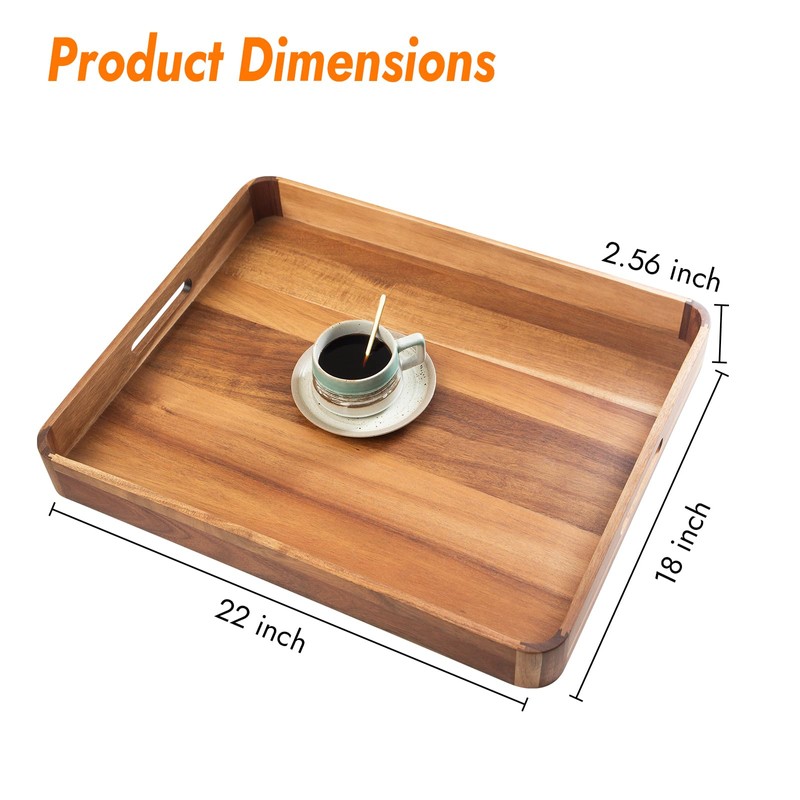 - 【Superior Wood Serving Tray】Made of natural acacia wood of high quality,lightweight but durable enough for serving food.The built-in handles makes the transporting foods and drinks safely and securely.