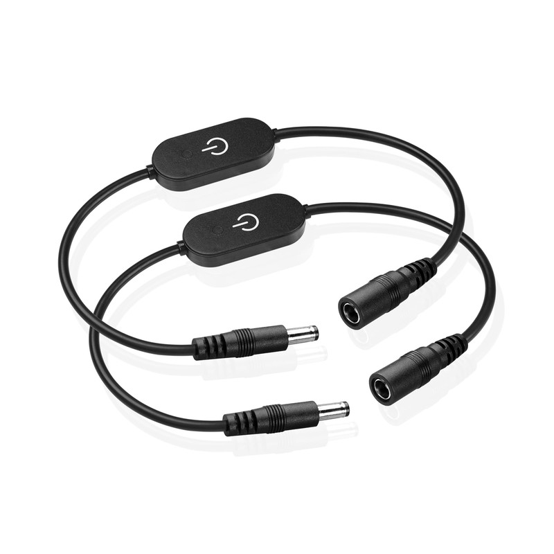 GINTOOYUN 2pcs LED Touch Inline Dimmer Switch DC 12V 3A Single Colour Dimming Switch Controller DC Jack (5.5x2.1mm) for Single-Colour Light bar, Control The Brightness of LED Strip Light
