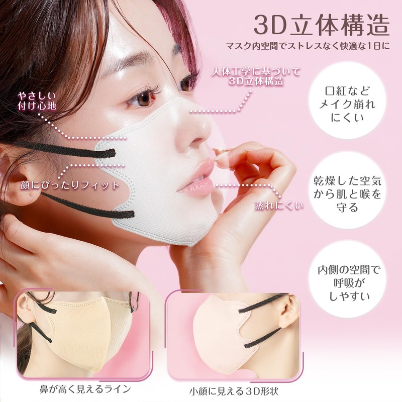 - 【Wait for you! The long-awaited 3D standard size is now available! 3D masks are welcomed by many customers, and we are now selling "3D regular size" in order to meet your requests. 3D structure and smooth lines make your face look smaller. We have improved the size larger than the smaller so that it can be used by more customers. The shape makes the face line more beautiful
