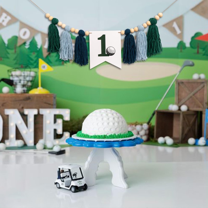 - This beautiful high chair banner will add a lot of fun to your party! golf theme banner perfect for baby's first birthday party.