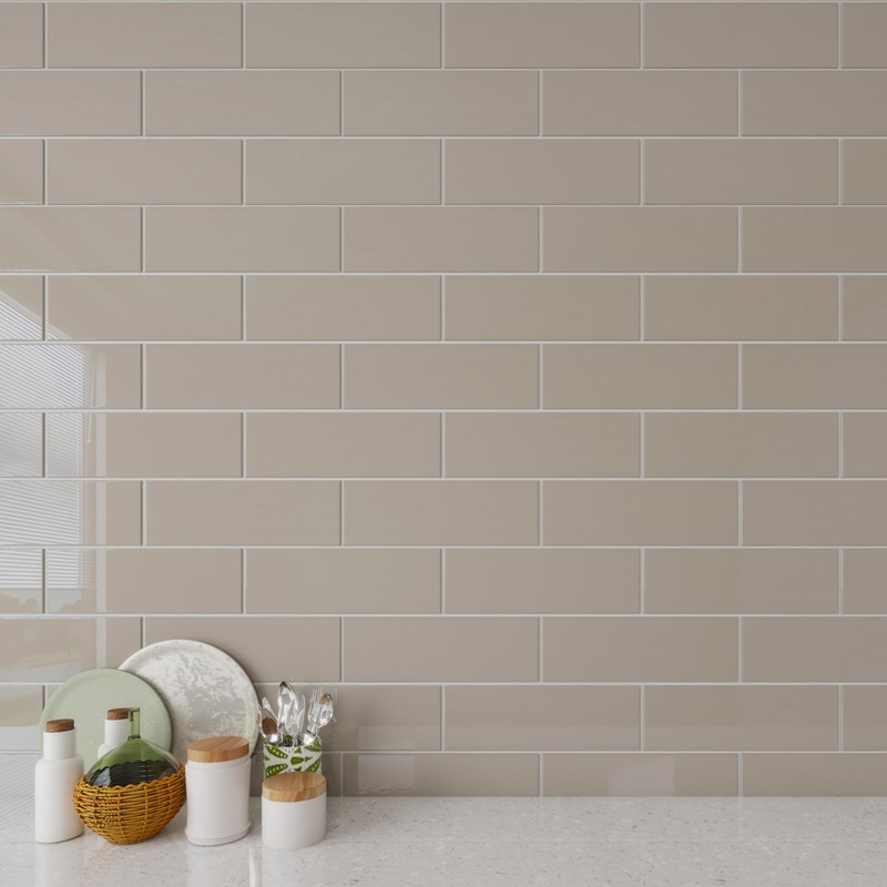 Giorbello Glass Subway Backsplash Tile, 4x4, Light Taupe, Sample Tile (1 Piece)