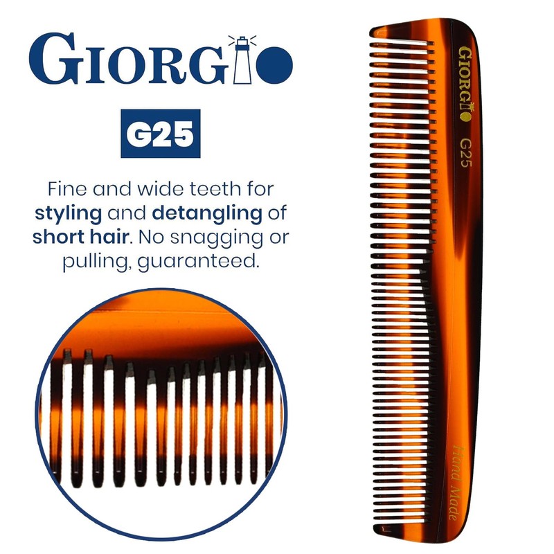 Giorgio G25 FineTooth and WideTooth Pocket Comb - Hair Styling Comb for Men and Women, Handmade Beard Combs for Men, Barber Combs, for Grooming,Saw Cut and Polished