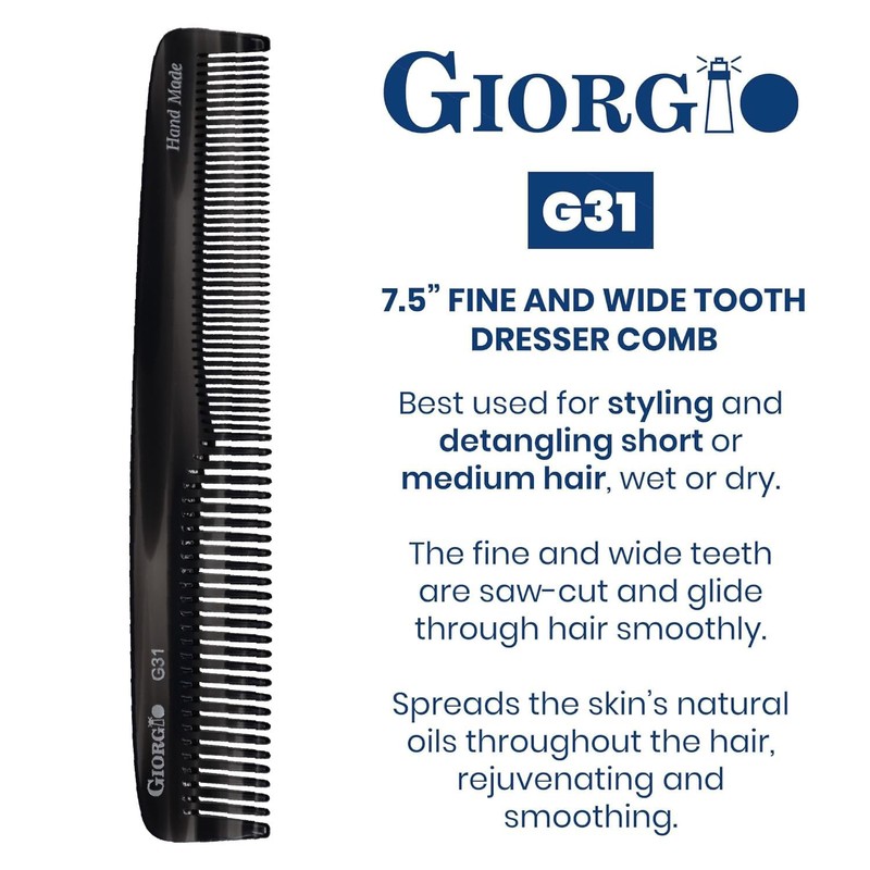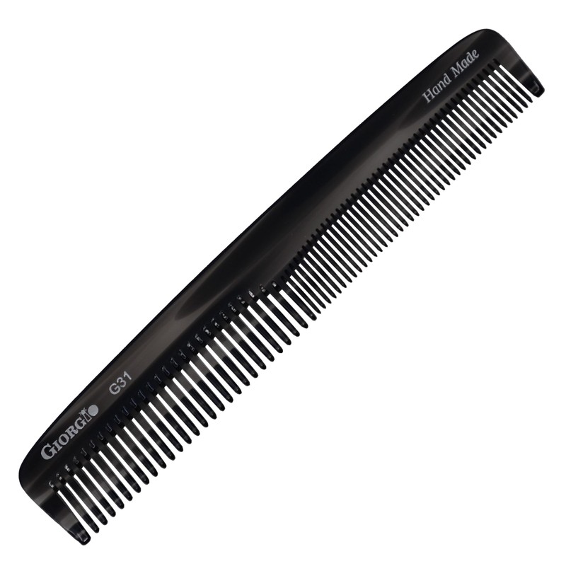 Giorgio G31 Fine Tooth and Wide Tooth, Hair Comb - Hair Styling Comb for Men, and for Women, Mens Beard Care Combs for Detangling and Styling - Handmade Saw-Cut and Hand Polished (Black Graphite)