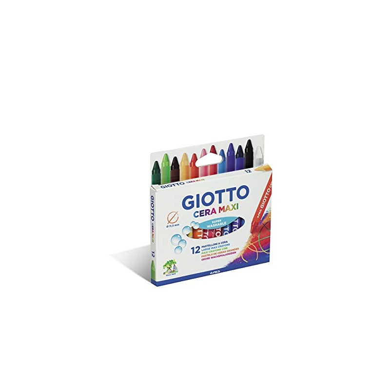 GIOTTO Cera Maxi Super Washable Large Wax Crayon, 12 Assorted Colours, Ideal for Children, Party Bags & Schools