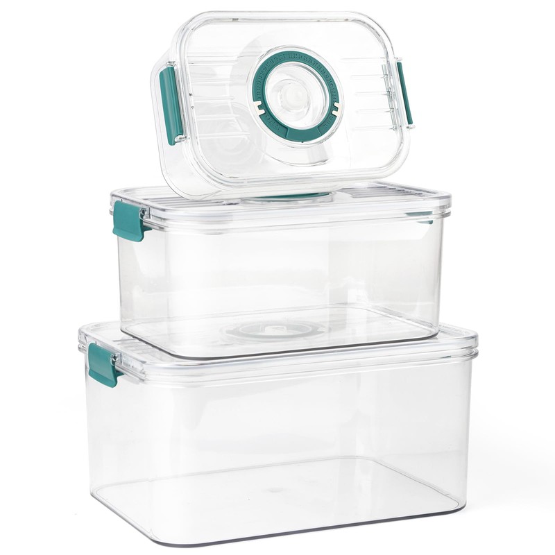 GIOVARA Sealed Bread Box Plastic, 3 Containers Time Recording Bread Storage Bins, Bread Bins For Kitchen for Homemade Bread, Pastry, Cookie, Fruit, meat, Veggie (1,2L, 2,4L, 4,3L)