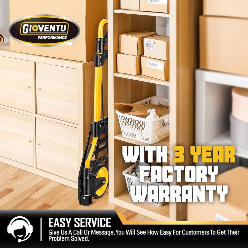 - 【Easy Operation with 3-Year Support】No assembly required – our foldable cart with wheels is ready for action straight out of the box. Rest assured with our inclusive 3-year after-sales service. Should your expectations not be met by our foldable hand truck, simply contact us. We're dedicated to exceeding your satisfaction and ensuring your peace of mind