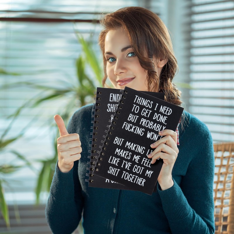GioXtra Lined Spiral Journal Notebook - 2Pcs To Do List Humorous Quote A5 Spiral Notebook Journal Black Hardcover Diary Lined Page Notepad Office Coworker College Ruled School Student Note Taking Gift