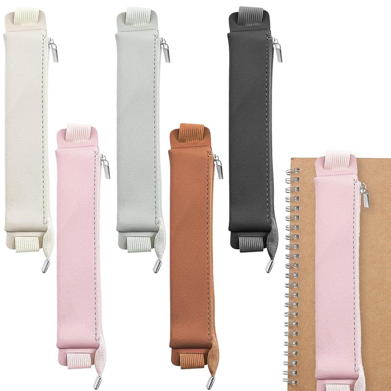 Gipoowaa 5 Pcs PU Leather Elastic Band Pencil Case, Adjustable Pen Sleeve Pouch for Notebook, Planners and Binders, Keeps Organized and Prevents Ink Stains in Bags, Perfect for Office and School