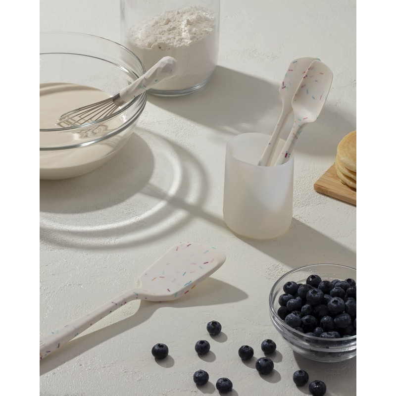 - KITCHEN STAPLE FOR ALL COOKING NEEDS - The Mini set is the ultimate kitchen tool bundle. Loaded with a Spatula, Spoonula, Flip/Turner, Whisk, and tool container, you are sure to have all that you need to cook and serve every meal