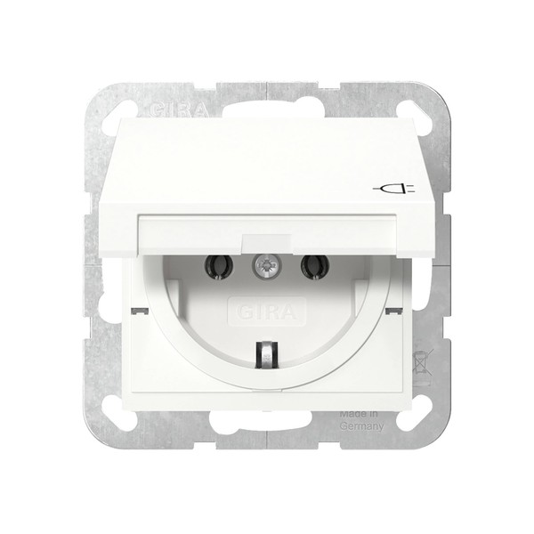 Gira 445403 Schuko Socket with Hinged Lid System 55 Pure White Glossy