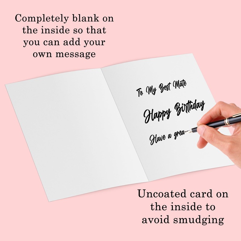 - WHAT DO YOU GET: The card is printed on one side and BLANK ON THE INSIDE to allow you to write your very own message. The unique manly design is printed on a specially sourced and environmentally responsible board. At 360 microns thick the natural white one-sided gloss board has a quality look and feel. Supplied with a coloured gummed envelope to complement the design and ready to be sealed and sent in the post.