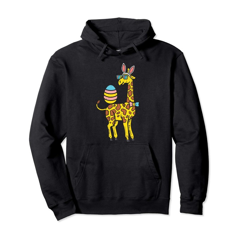 Giraffe Bunny Ears Egg Cute Easter Day Animal Kids Girls Pullover Hoodie