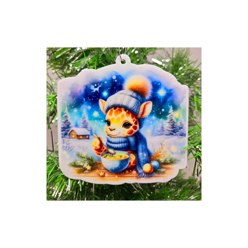 Giraffe Ornament - Giraffe Eating Soup Winter Christmas Ornament