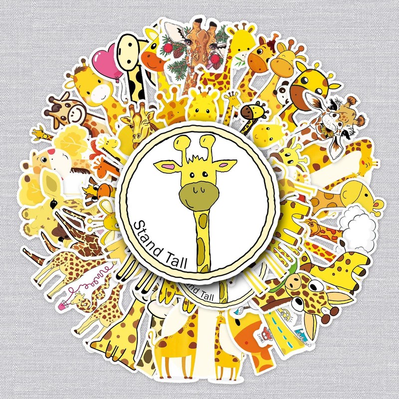 Giraffe Sticker Set of 50 Cute Decoration for Car Laptop Skateboard Bicycle Moped Motorcycle Bicycle Computer Suitable for Adults Children
