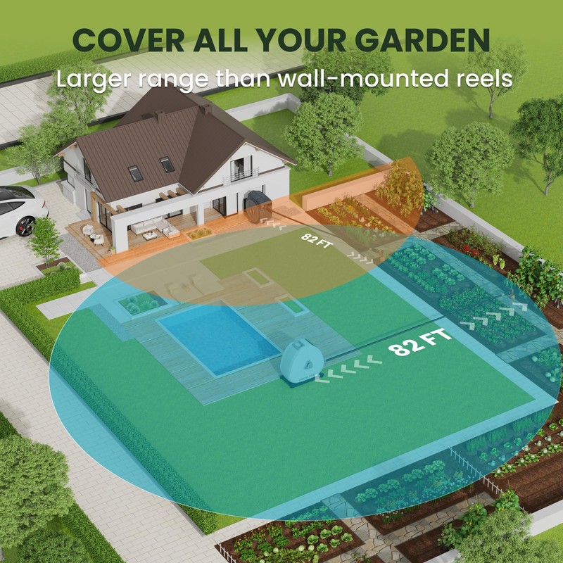 Giraffe Tools Ground Mounted Retractable Hose Reel 1/2 Inch x 82FT, Heavy Duty Automatic Rewind Garden Hose Reel, with Flexible Swivel Base for Lawn, Concrete Floor