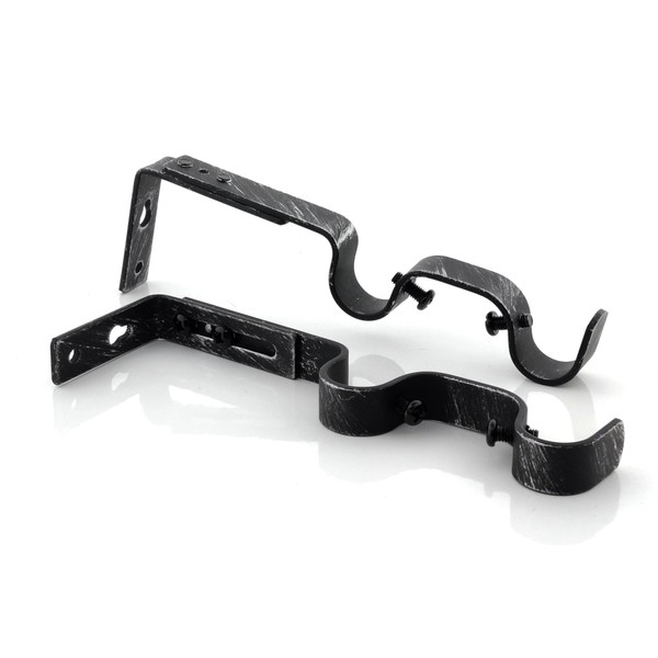 GIRASOLE HOME® 2 x Adjustable Double Curtain Pole Brackets for 18-20mm Diameter Rods (Open Double 165mm, Black and Silver)