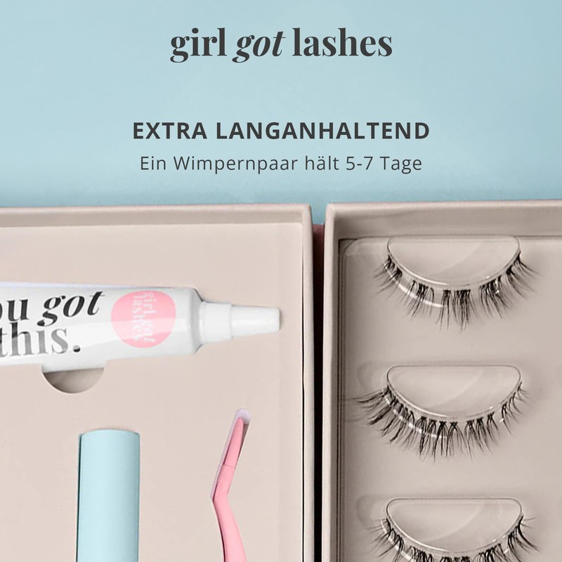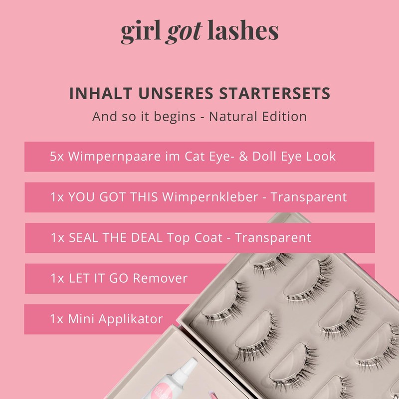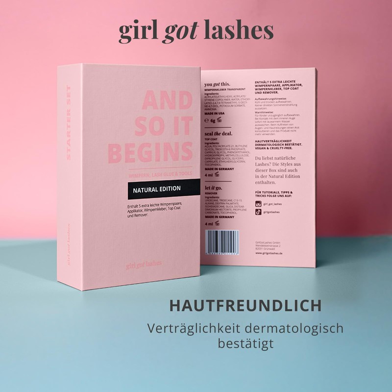 GirlGotLashes Starter Set And So It Begins - Natural Edition - With Eyelash Glue Black, Top Coat, Mini Applicator & Remover - 5 Eyelash Pairs