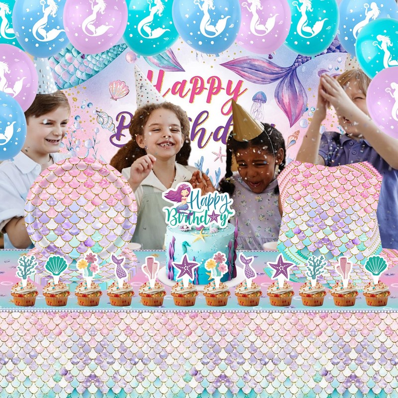 - 🧜Exquisite party decorations: This set of birthday party supplies uses a very shiny fish scale design, a beautiful underwater world design and eye-catching color matching, which will definitely bring a bright party effect to your girl. This set of party decorations will definitely be liked by your children, let your children enjoy a wonderful birthday party!