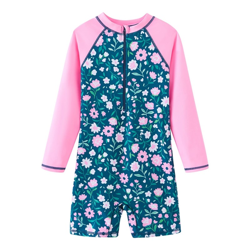 Girls Rash Guard Long Sleeve One Piece Swimsuits with UPF 50+ Sun Protection Zipper Bathing Suits Flower,4T