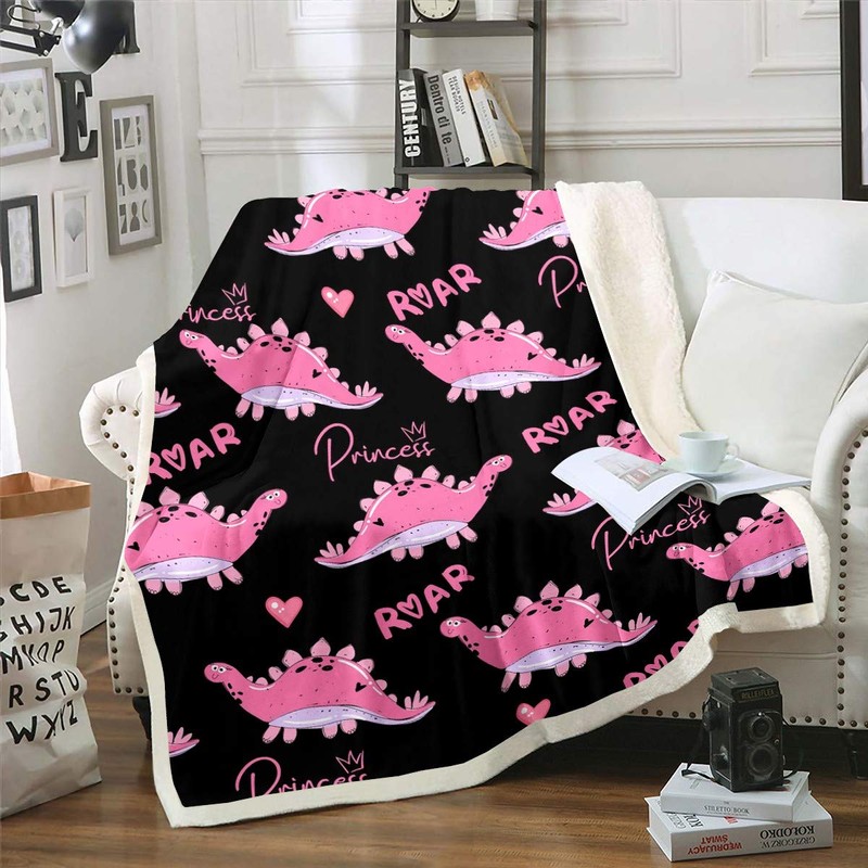 Girly Cartoon Dinosaur Plush Blanket Cute Dino Sherpa Blanket Jungle Animals Fleece Throw Blanket for Couch Bed Sofa Adults Heart Crown Princess Kawaii Pink Fuzzy Blanket Room Decor Baby 30"x40"