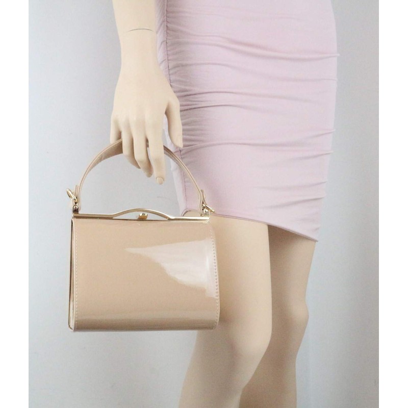 Girly HandBags Glossy Patent Faux Leather Clutch Bag Handle Closure Evening Handbag -- Nude