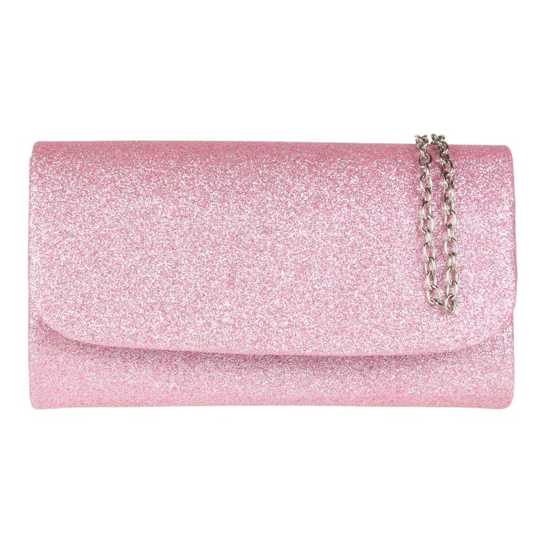 Girly Handbags Sparkly Plain Clutch Bag, pink