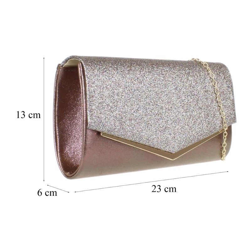 Girly Handbags Womens Glitter Flap Clutch Bag Bronze
