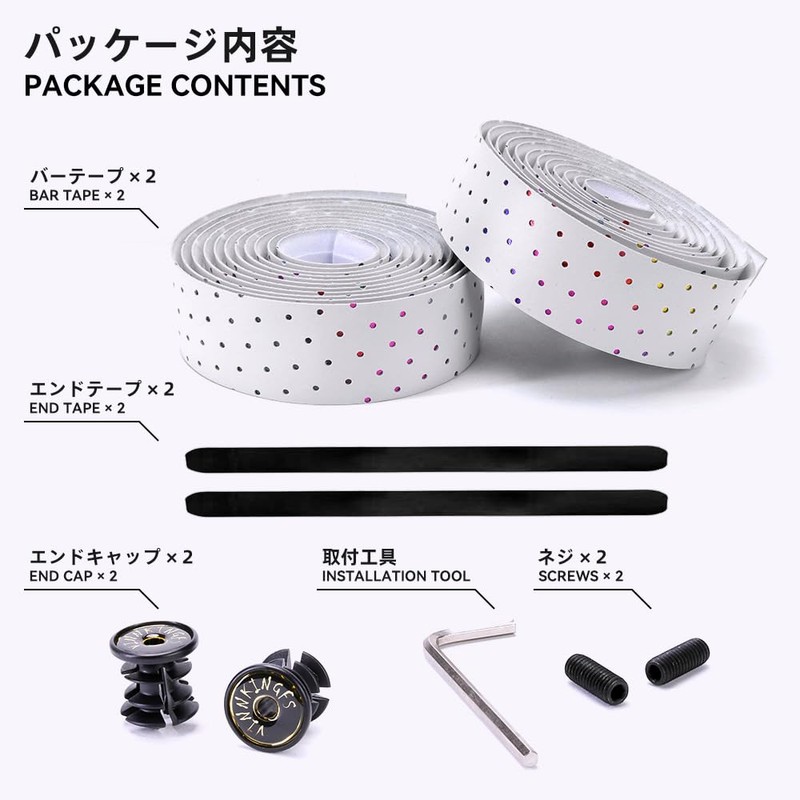 - 【簡単取り付け】 高品質の両面テープにより、ハンドルに巻きやすくなり、巻いた表面も美しく整います。バーエンドテープとエンドキャップも付属していますので末端の処理も簡単です。初めての方でも手軽に取り付け可能です。【ご注意】バーテープを取り付けた後は、必ずしっかり固定されているかご確認ください。取り付けが不十分な場合、走行中に外れる恐れがあり危険です。