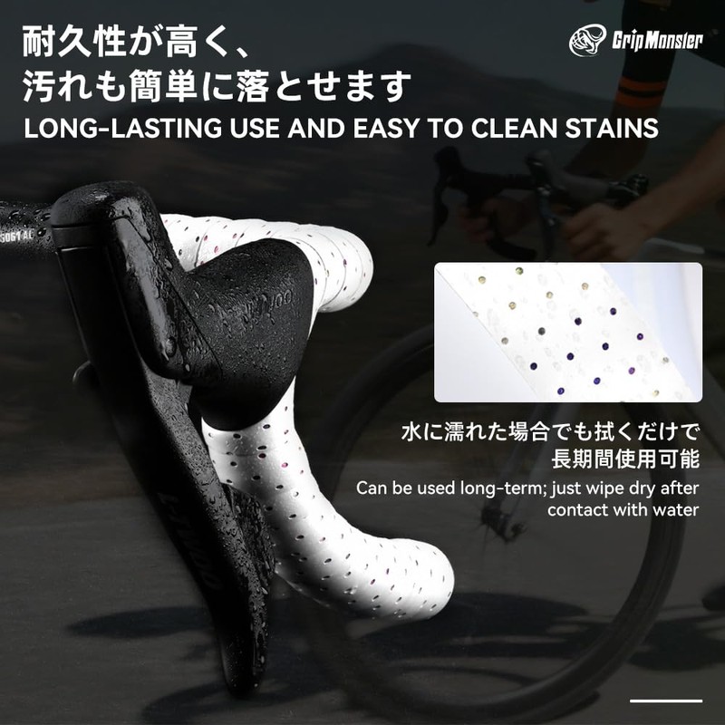 - 【圧倒的なグリップ感】 滑り止め加工と衝撃吸収性能を兼ね備えたハンドルバーテープです。路面からの振動を和らげ、感触も伝えられます。握力不足によるエネルギー損失を抑え、コントロール精度を高めるため、高速のコーナリングや直線スプリントでも安全で安定した操作感を実現します。
