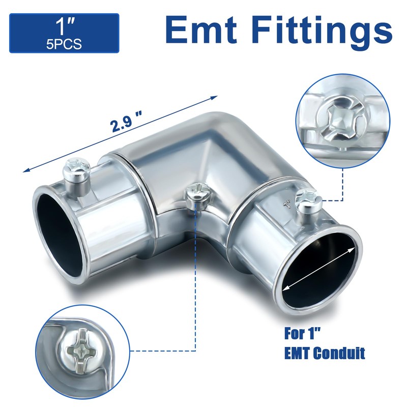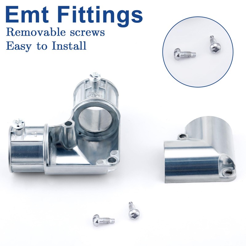• Easy to Install: thanks to the 90 degree structural design and fastening screws, the EMT 1 conduit fitting is easy to install, can be well redirected in the direction of conduit operation by simply pushing the conduit or tube to a 90 degree internal angle