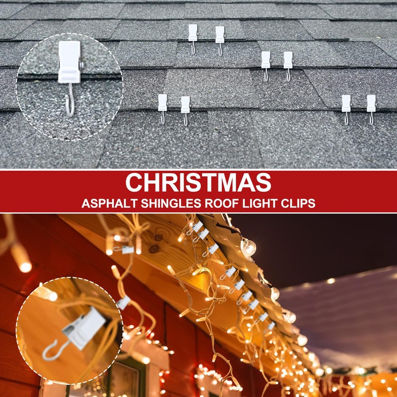 - Easy to Install: Installation is very easy with our Christmas light clips; Simply clip the clips to where you need them, such as a sink, window, under a roof tile, beam, or Christmas tree branch, and then hang the strings of lights on the hooks; They are very versatile and can be applied anywhere you need them