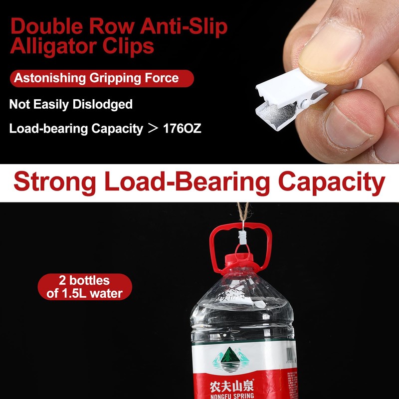 - Outstanding Performance: made from thickened electroplated iron, outdoor hooks for string lights are not easily deformed and are finely polished for a long lasting lifespan; Our clips stand assertively even under extreme weather conditions or heavy pressure, and they can support a weight of 176 ounces or more, thanks to their crocodile tooth anti slip design