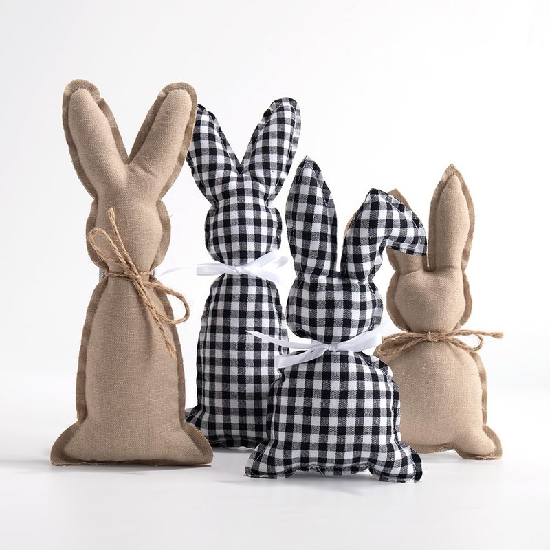 GISELA D Decorative Easter Bunny Set, 4 Pieces, Fabric Bunnies with Bow, Easter Table Decoration, Decoration for Standing Up for Easter
