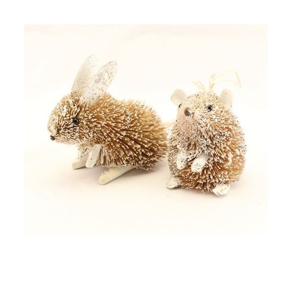 Gisela Graham : Bristly Rabbit & Mouse Decorations (set of 2)