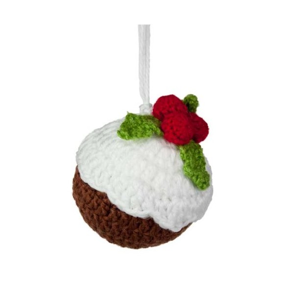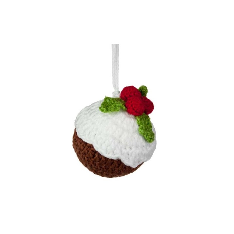 Gisela Graham Knitted Fabric Christmas Pudding Decoration - 9cm